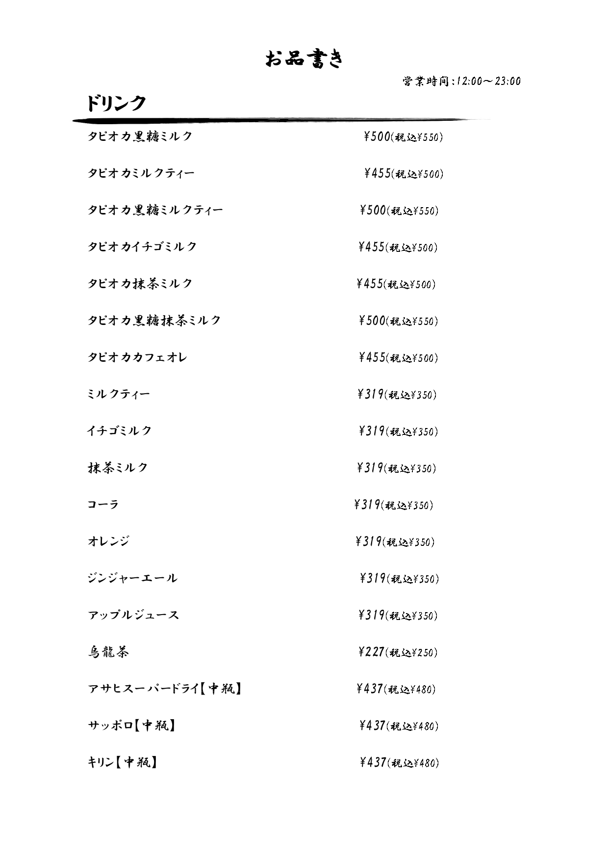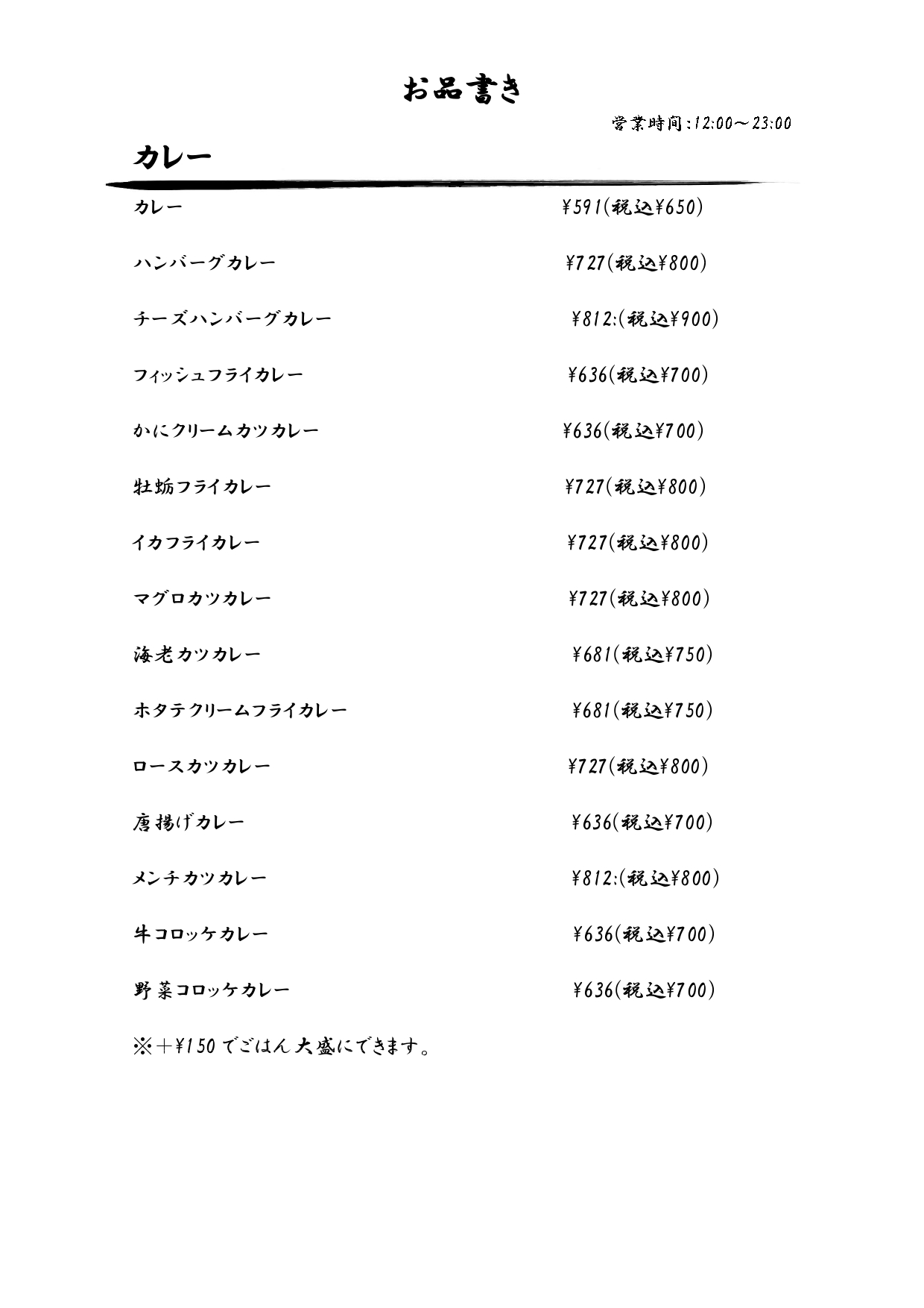 12:00 ~ 23:00 L.O. 22:30 |